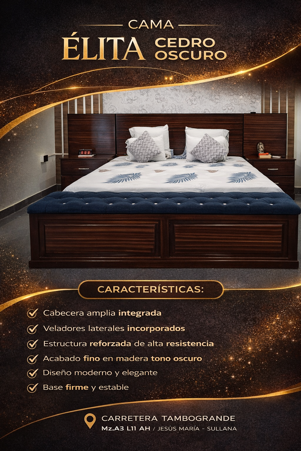 ✔ Veladores laterales incorporados