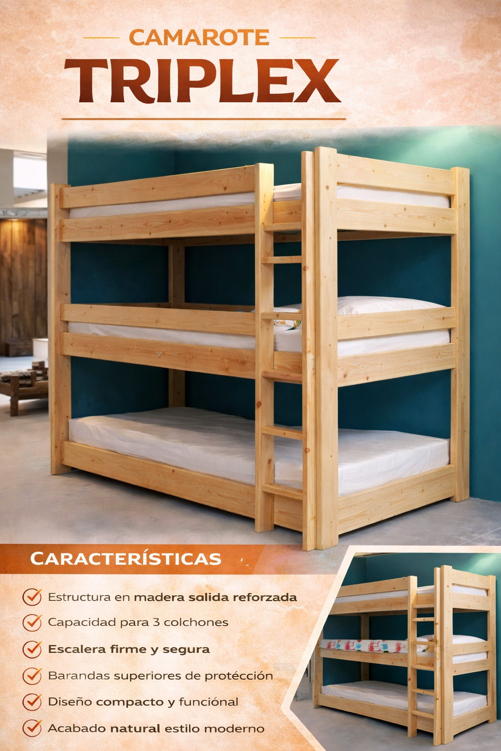 ✔ Capacidad para 3 colchones