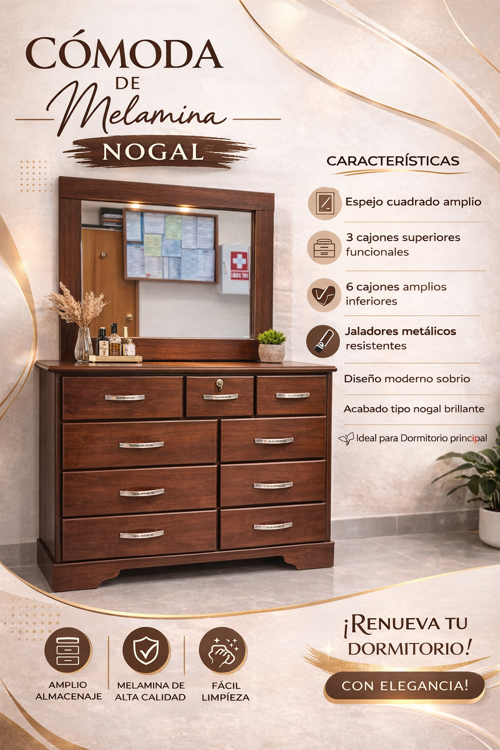 ✔ 8 cajones espaciosos