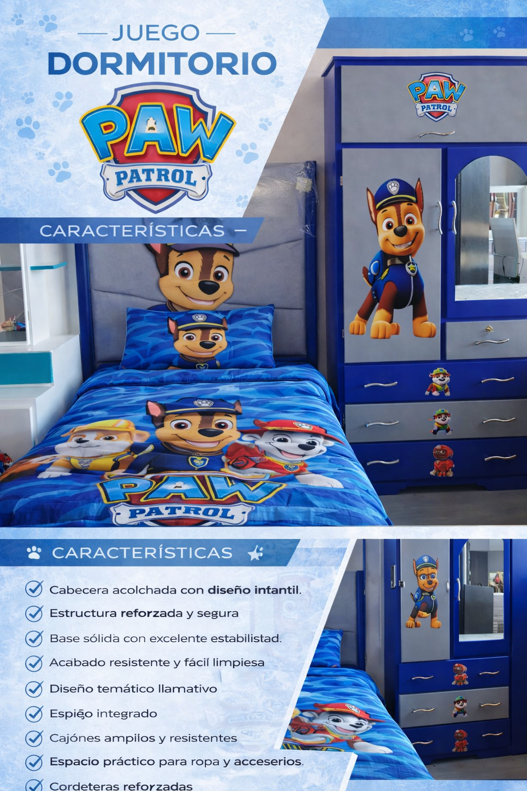 ✔ Cabecera acolchada con diseño infantil