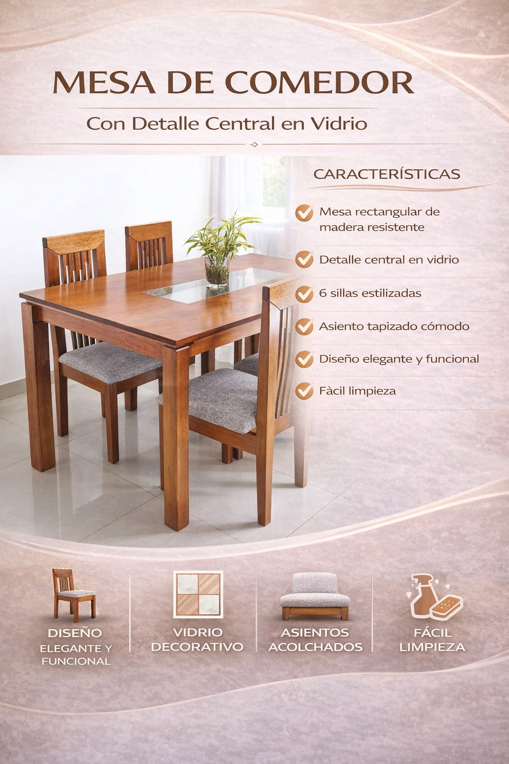 MESA DE COMEDOR CON DETALLE CENTRAL EN VIDRIO